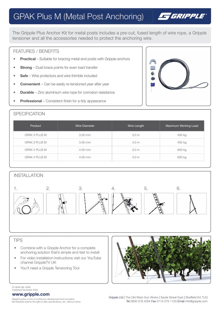 • Gripple GPAK Plus M Anchor Metal Trellis Post Tiebacks, Box/20