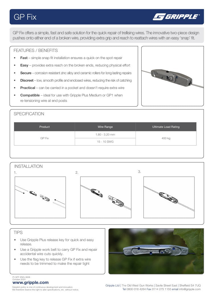 - can be released using a Gripple flag key - to be reused if the wire can't be repaired or if more wire needs to be trimmed