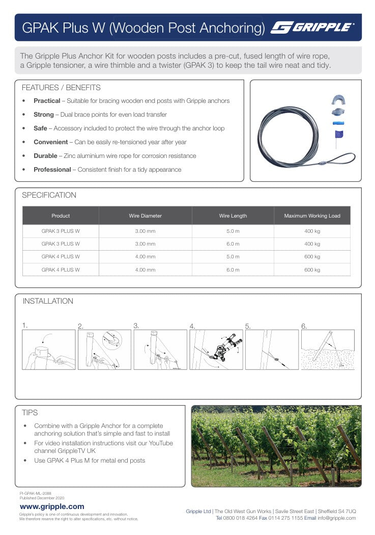 Gripple GPAK Plus W Anchor Wooden Trellis Post Tiebacks, Box/20